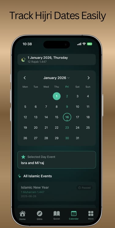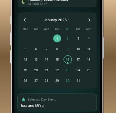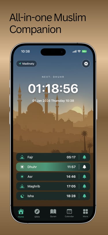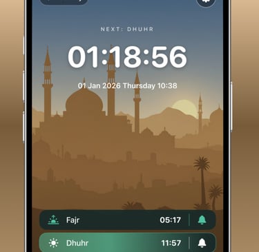 Prayer times are calculated using established calculation methods. You can select the method that best fits your region (if supported in the app).